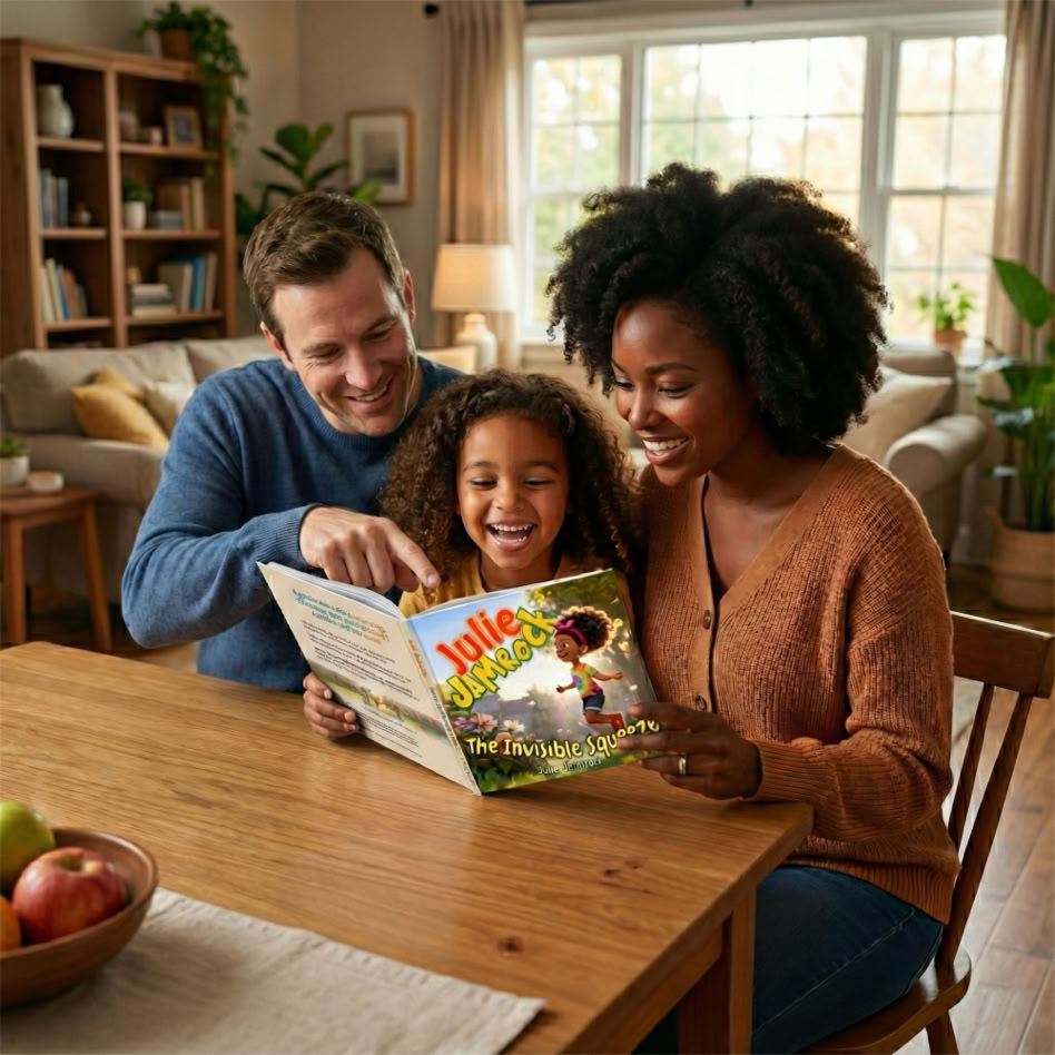 In "The Invisible Squeeze," Book One of the Series, Julie learns to cope with confusing feelings when a new friend says something ‘weird’ about her mixed heritage.  Julie discovers what truly makes a family is love and understanding.